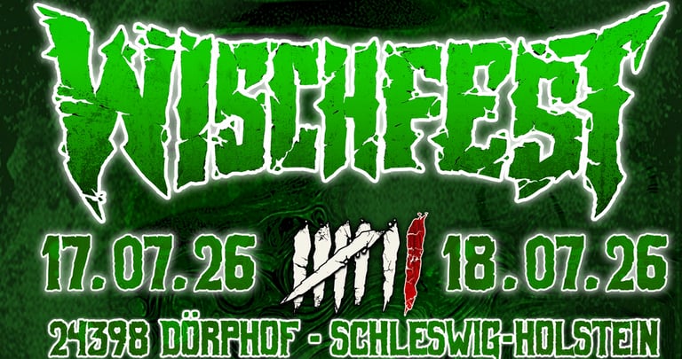 Weiter können wir bekanntgeben, dass wir am Samstag, den 18.07 auf dem WISCHFEST zocken! Beim Wischfest handelt es sich um ein gemütliches, aber oldschooliges Festival ganz in der Nähe der Ostsee mit u. a. Bands wie BLITZ und WITCH CROSS. Schaut mal rein unter www.wischfest.com!